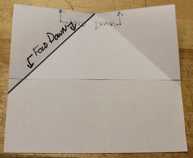 2. Doblar la esquina superior izquierda en el medio y pliegue hacia abajo.