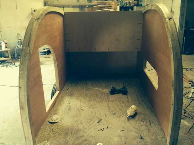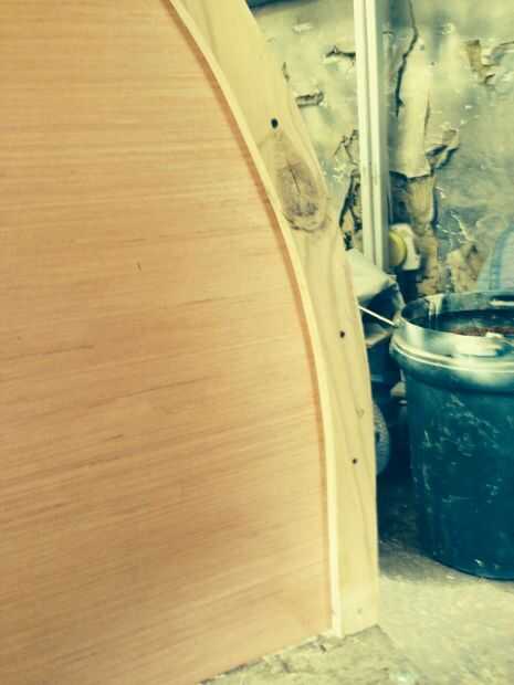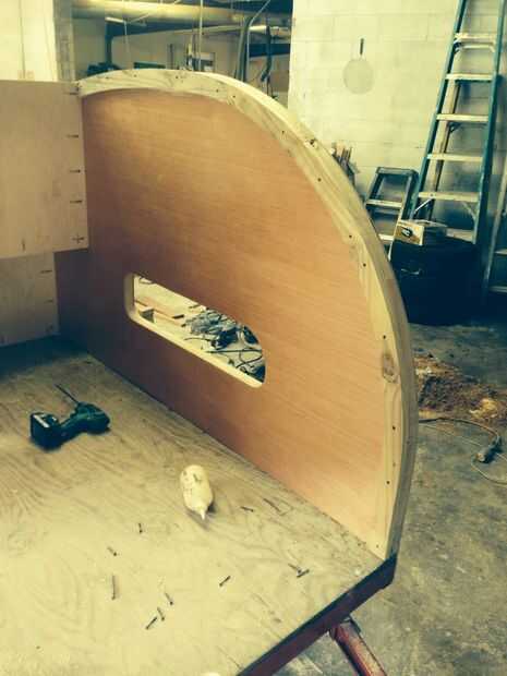 Estas porciones curvas proporcionará apoyo para el techo, junto con las "costillas" que se colocará en el medio. Hacer, remonta a una porción de la curva exterior sobre una madera de desecho de pieza. Cortar esta curva en la Sierra de cinta. Entonces, sujeta una cuña de madera para que su punto de un ángulo recto con la hoja de Sierra de cinta y la punta de la cuña 2" de la hoja. Corrí la misma pieza de madera a través de la sierra otra vez con la curva actual choca con el punto de la cuña de potencia. Ahora debe tener un pedazo curvo 2" de ancho. Continuar con este proceso para hacer soportes para la curva exterior hasta la pared.