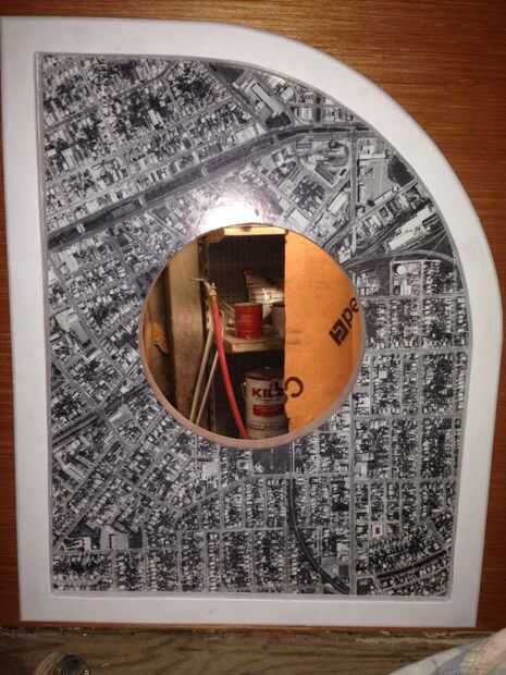 He aislado de la puerta y luego de piel con un pedazo delgado de madera de desecho. Tenía un viejo mapa de la encuesta que había rescatado del Departamento de Geología de la escuela. Usé el cemento de contacto para fondo de pantalla del mapa en la puerta. Luego he pintado sobre el mapa con base de agua Minwax Polycrylic protección final. Aplicar este acabado, con muchas capas para evitar que el mapa de arrugarse.