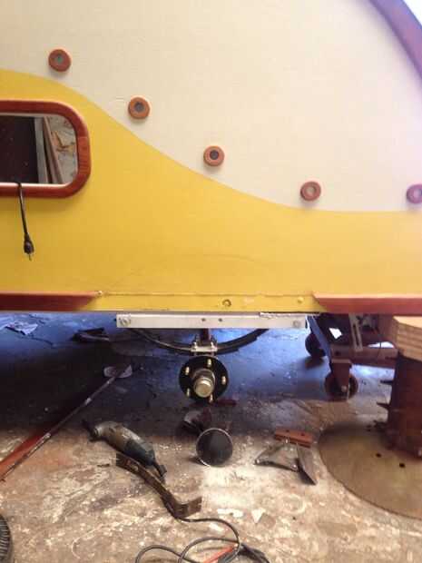 Antes de instalar las defensas me mudé más atrás el eje de las ruedas. Las ruedas necesitan para ser trasladado porque no había suficiente peso en el enganche. Para saber hasta qué punto atrás para mover las ruedas, me he cargado la espalda con unas 200 libras de lastre (para representar una cocina futuro). Luego pasé a las ruedas a un par de lugares diferentes. Encontré un lugar para las ruedas donde habría alrededor de 100 libras de peso con la espalda completamente cargado.