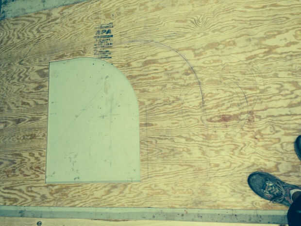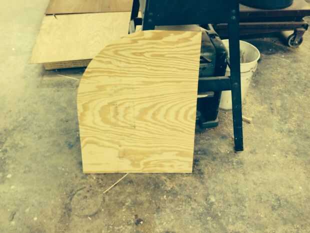 Ahora comencé a planificar la forma de lágrima para los lados de la caravana. Esto se hizo en la hoja de madera contrachapada que haría en la pared externa del lado de la puerta de la caravana.