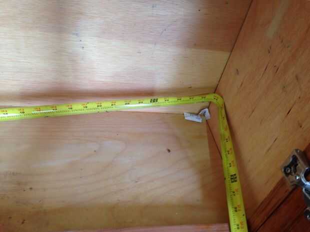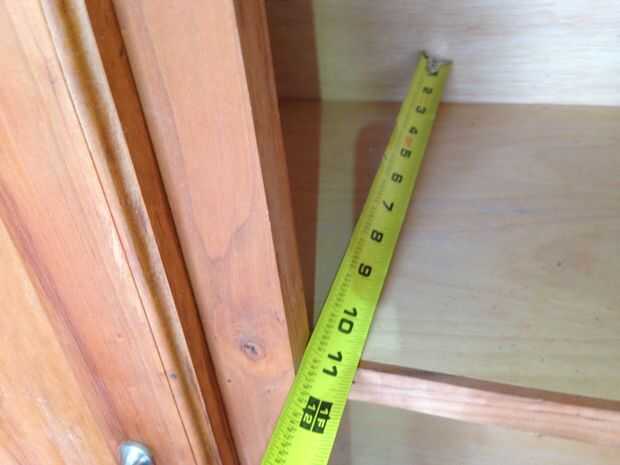 - Marqué en el estante inferior y el tabique donde estos iban a instalarse - delgada línea a ambos lados de los divisores de madera contrachapada.