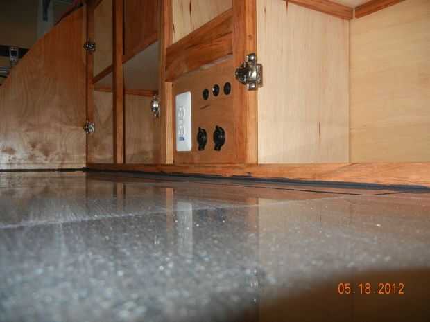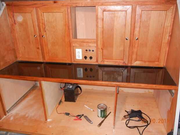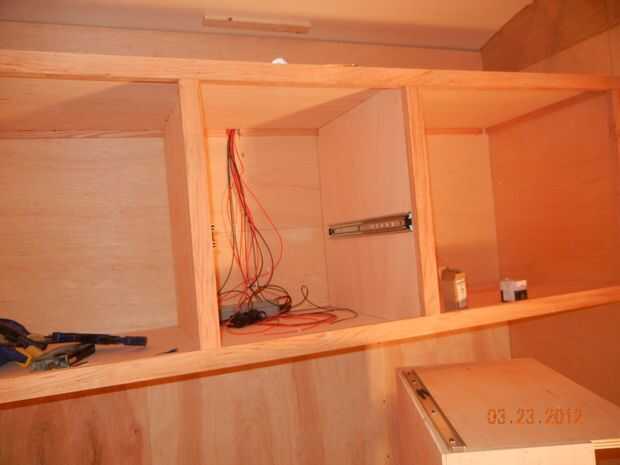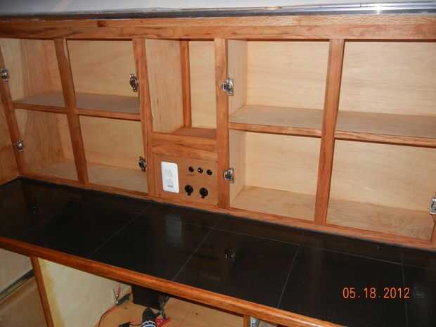 - El gabinete inició con sólo el estante inferior que se instaló cuando se instalaron las paredes laterales y también sirve como la encimera de la cocina al otro lado del mamparo.
