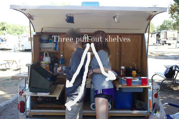 La primera foto de arriba es mi favorita tiro de la Galera en uso - día del padre en el gran cañón y mis hijos es de fijación me desayuno en la cama - me serví tocino, huevos, hash browns. Hay 4 cajones en la cocina - tres son sólo tirón hacia fuera estantes mientras que el 4 es para utensilios de cocina y tiene una forma extraña.