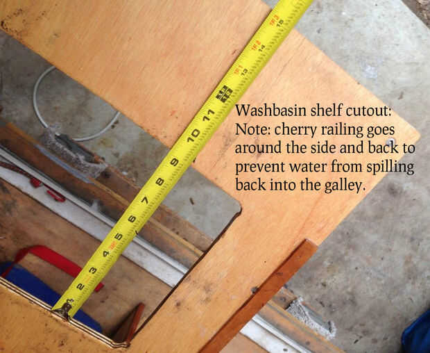 El saque de estantes son realmente fáciles de hacer - tomé 3/4 "x 1 1/2" x 18 "roble tablas y montado en correderas. Las correderas entonces fueron montadas a la pared de la cabina y los separadores debajo de la cubierta de la Galera.