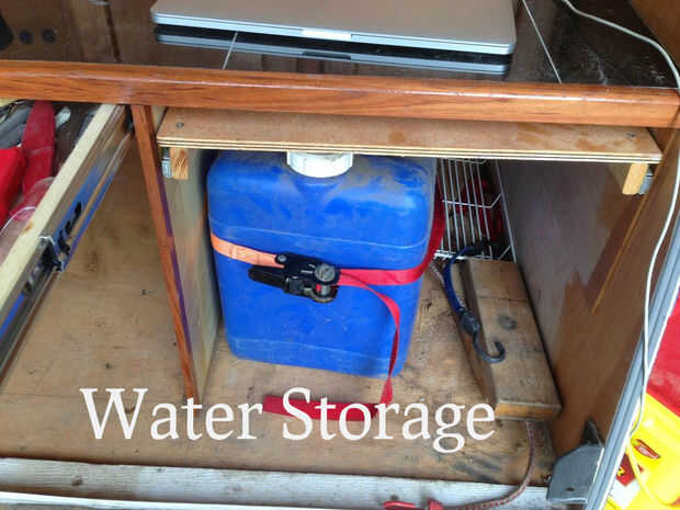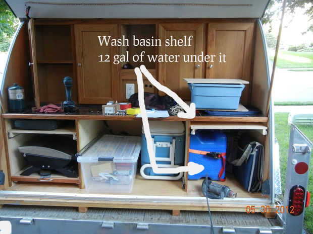 La plataforma de la mano derecha tenía un orificio en ella que se adapta a una caja de almacenaje rubbermaid que la he utilizado por años como un lavabo durante viajes de camping.