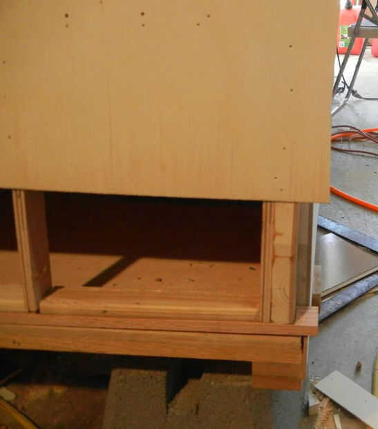 - Hice 3-3/4" x 2" x 72" roble struts - uno para la parte inferior de la estructura de la portilla, uno para la parte superior. Entonces yo cortar 3/4" de la parte superior y parte inferior de la tapa curvada puntales. El montante restante fue cortada para caber dentro de los dos puntales exteriores y encolados/atornillados para el puntal superior de roble y los postes de madera exteriores (ver dibujo). Como he mencionado cuando enmarcando la cabina struts - he utilizado struts roble doble para donde yo estaba instalando las bisagras para la fuerza.