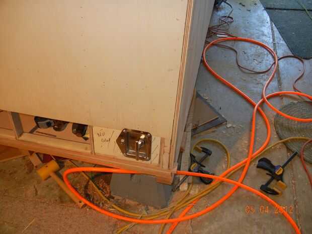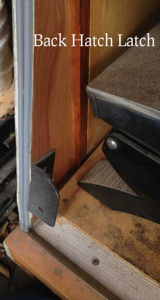 - Lo siguiente a realizar es la instalación de los cierres de la portilla - comprar cierres de portilla de grado marino de West Marine y cortar un par 3" largo de ángulo de hierro para sujetar a las paredes de la cabina. Instalación de cierre se realizó siguiendo las instrucciones que vienen con los cierres y con piezas de desecho de la la madera contrachapada de 1/8" para obtener el espacio en el exterior de la escotilla. Estos necesitan colocado y enmarcada hacia fuera por lo que se podría montar para enganchar la tapa hacia abajo firmemente.
