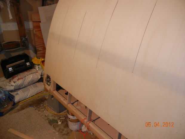 - Los arcos interiores 5 luego poner en el marco de la escotilla y hasta fueron espaciadas 12" aparte - centro a centro. Esto dio lugar a los arcos de la pared y los primeros arcos en de la pared es menos de 12" aparte.