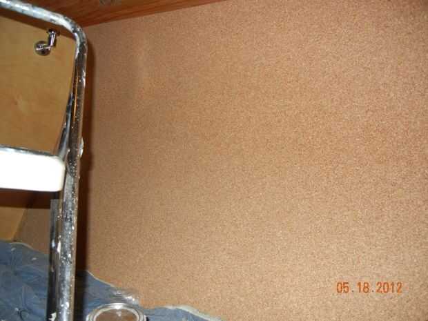 11. Usé un cuarto de galón de cemento de contacto y un rodillo aplicar al corcho (deja secar) y el piso y la pared también se cubrieron con el mismo adhesivo (dejar secar también).