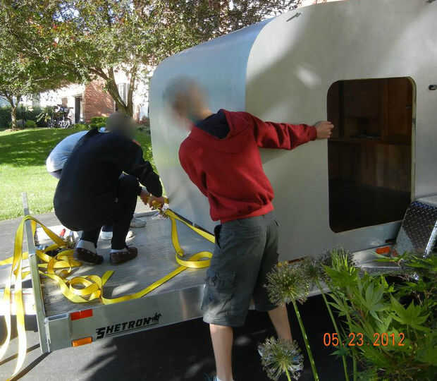 Carga de la cabina del remolque era más fácil de lo que esperaba - con una pega menor... Ahora medí todo varias veces antes de empezar este proyecto fue la cama trailer 72" y el exterior de la cabina fue 71 1/2" todo debería haber ido sin problemas!