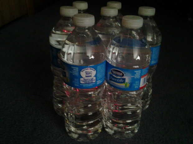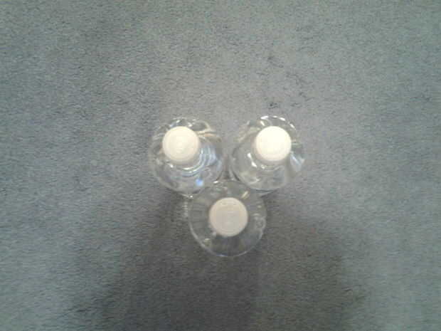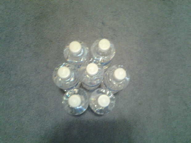 Como dije antes, yo estaba jugando con un teaser de láser y brilló en una botella de agua y decidió hacer un "juguete" por mi cuenta. Mi plan no cambio porque es muy sencillo, organizar botellas de agua para hacer un diseño fresco para mis gatos.
