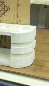En este punto, el signo fue casi terminado. Sin embargo, el diseñador quería más detalles sobre el revestimiento. Uso flexible tablero de tiras, material adicional fue agregado para el revestimiento con el mismo procedimiento que antes. Apliqué una capa de masilla y lijar el exceso. Después de este paso, tenga cuidado de trabajando en el interior de la señal de los clavos del clavito expuestas pueden estar afilados y pueden cortar si no tienes cuidado.