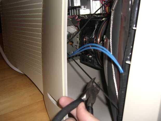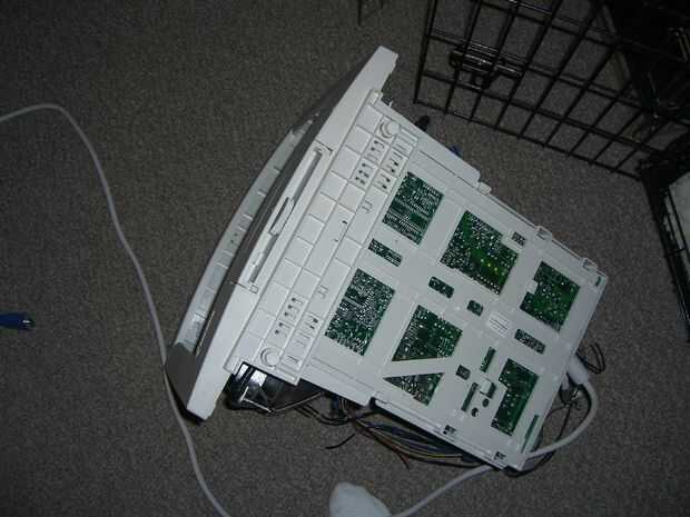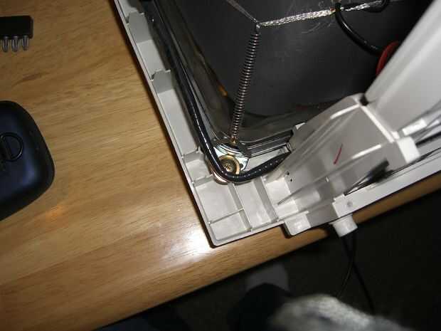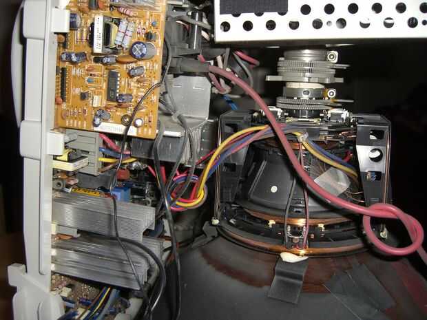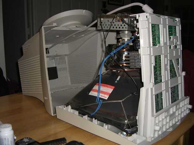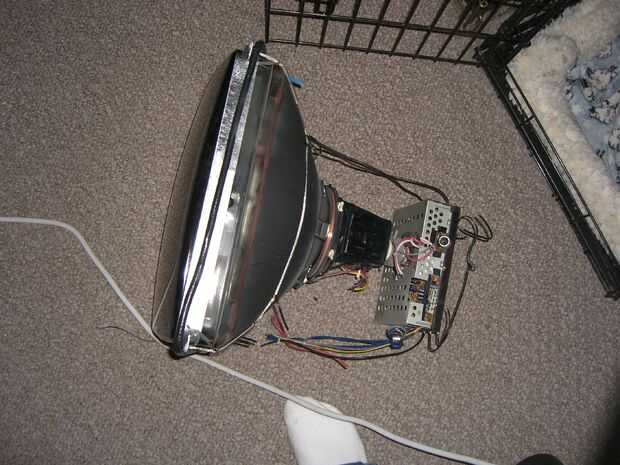 Una vez que la parte frontal del monitor se ha deslizado hacia fuera, hay un montón de cables, conectar el tubo a la platina. Toma tus tijeras y cortar los cables que están conectados a la placa. Una vez que todos los cables se cortan hay 4 tornillos, uno en cada esquina del tubo, esto libera desde la parte delantera de la caja. Puse en el suelo y suavemente levanta el plástico de tubo. Asegúrese de que usted recicla esta parte (el tubo), zona más tiene algún tipo de reciclaje electrónico que se alegre el tubo.