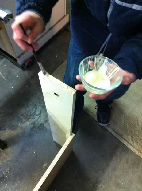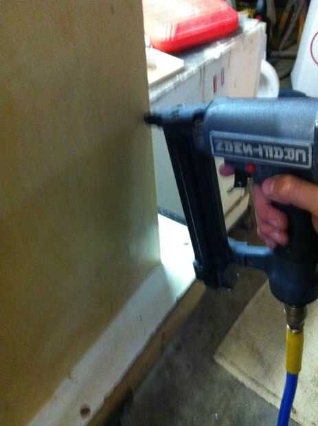 Ate y pieza de cola 5 x 31 3/4 de madera a la 15 parte de la pieza de 15x25in de madera Asegúrese de que le Repita con el otro lado. Entonces, clavo 25x5in pedazo de madera a la parte superior de la estructura. A continuación, obtener madera y pegamento a rincones del interior de la caja. Luego cola y clavo 25x5in pedazo de madera a la parte superior de la parte delantera de la cabina. Luego, añadir una pieza de madera de desecho a la parte de la cabina que asoma hacia fuera en el centro.