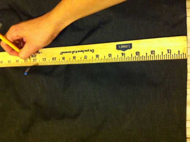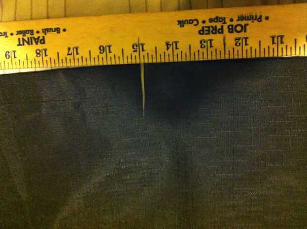 Corte la tela de tu elección en 15 alta y 12 1/2inches mucho hacer este paso dos veces. Cortar donde las marcas donde y utiliza un alfiler para marcar la corner.next, poke o cortar los agujeros en la cortina para que una varilla de 1/2 espiga puede caber a través o si tienes una cortina como yo a cortar desde la parte superior para ahorrar esfuerzo. Para hacer esto más fácil usé el primero de ellos como un modelo para la segunda.
