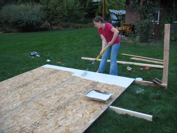 localicé un parcial galones de pintura blancuzco tuvimos de algún otro proyecto. Empleado mi 11 años de edad y 3 años para limpiar la pintura en. Después de que la pintura seque, añadí una tira de sellador en las juntas. Esto debe haber hecho antes de la pintura, pero los pintores no podían esperar. Para calafatear las juntas probablemente no es necesario, pero no quería un áspero conjunto de distracción de la película.