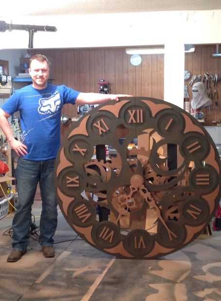 Este reloj de estilo steampunk fue construido para una versión teatral de todo el mundo en 80 días, producido por Una de todas las producciones durante abril y mayo de 2015. El reloj mide 5 pies de diámetro y características de controles electrónicos para programar la hora en el escenario entre actos. Los engranajes se mueven mediante un sistema de polea que se unen los engranajes.