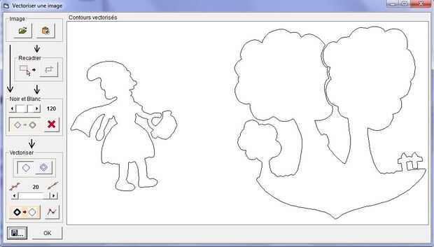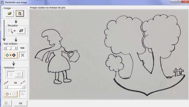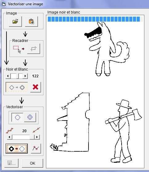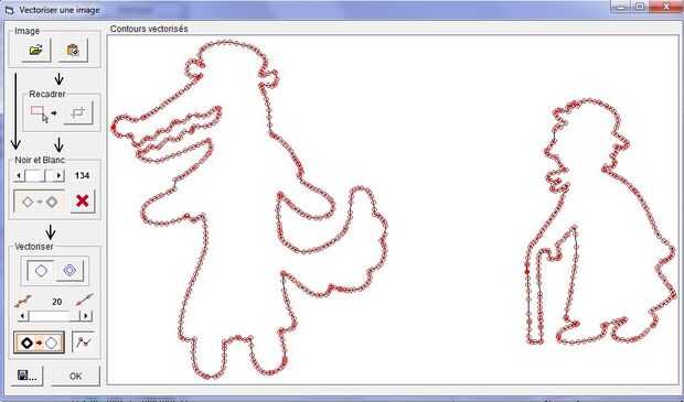 Tenga cuidado, la vectorización funciona bien con los cuadros del lado bajo 1200 píxeles. Si la imagen es demasiado grande, no será bueno. lado de 700-800 píxeles es suficiente para un caracter.