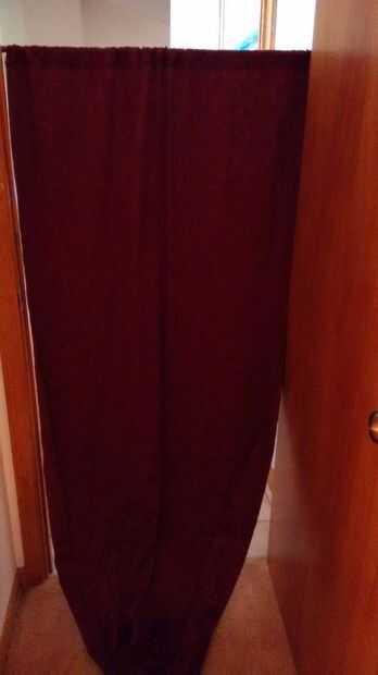 Ajustar sus cañas para caber cómodamente en la puerta, y pruebe la colocación de su cortina. Usted puede subir o bajar su cine en función de la edad de los niños que usted está creando. En este caso, colocado en una altura superior de 5 ft.