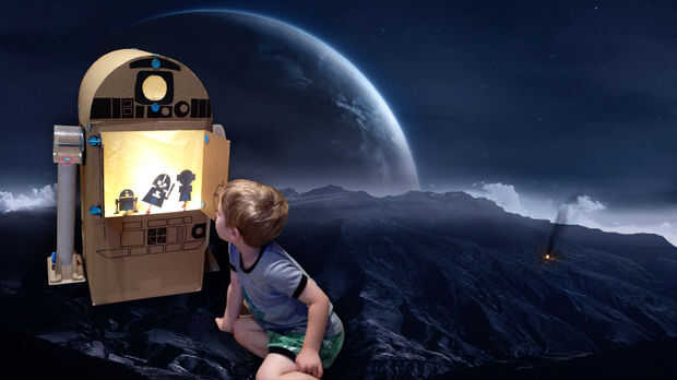 Viajar a una galaxia muy, muy lejos con este teatro de títeres de sombra de R2D2 muy cool. Apaga las luces y pasar al lado oscuro con Darth Vader, jugar una batalla de sables de luz o buscar Yoda Jedi de comenzar formación... todo en un esfuerzo por restaurar el equilibrio ya que apagar las luces para la hora del planeta 31 de marzo.