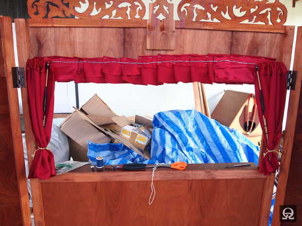 La tela negra, que sirve como fondo es lo suficientemente grueso como para los titiriteros no debe ser visto, pero lo suficientemente delgados como para los titiriteros ver la audiencia.