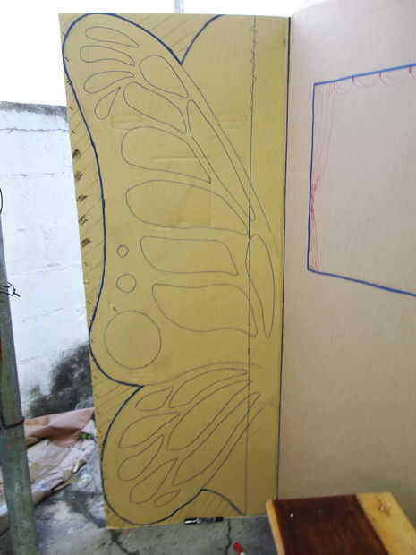 Cortaré las alas en forma. (alrededor de la línea gruesa). Como para el diseño interior del ala, no sé cómo lo haré.