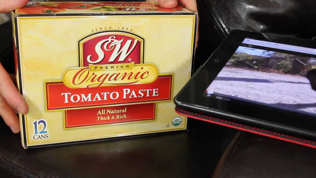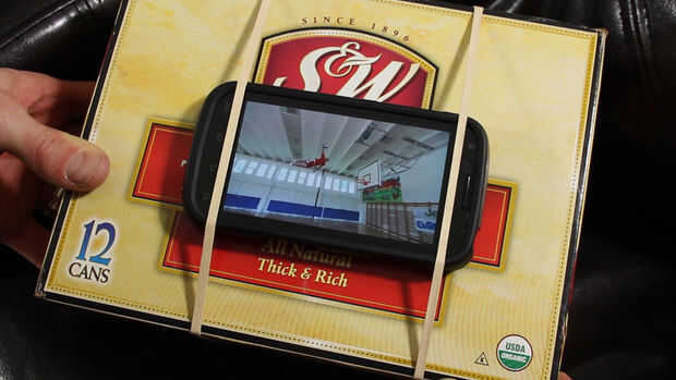 Para sostener el dispositivo en el proyector, usted probablemente querrá encontrar algo sólido como un par de libros de texto, o una caja resistente. Usé una caja de pasta de tomate que era del tamaño de un iPad.