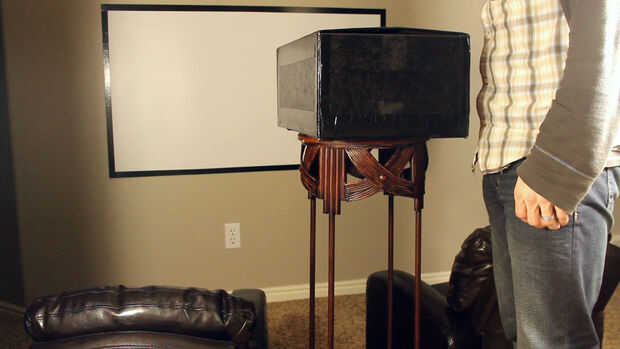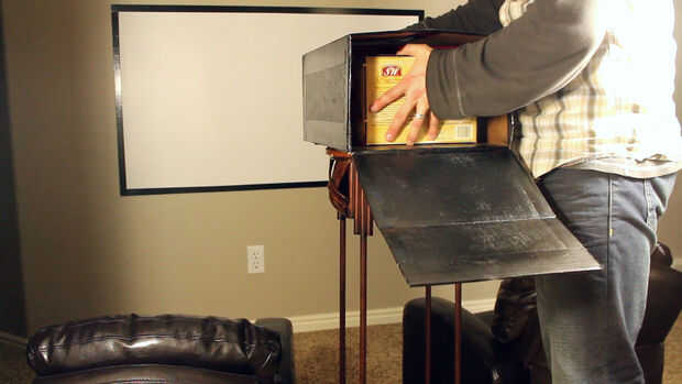 Usando un par de bandas de goma para asegurar el dispositivo en posición "boca abajo", ya está listo para ir en el proyector y jugar tu película!