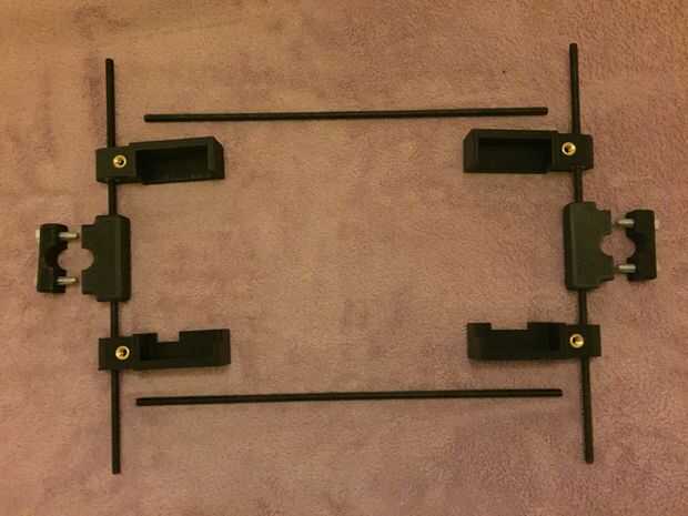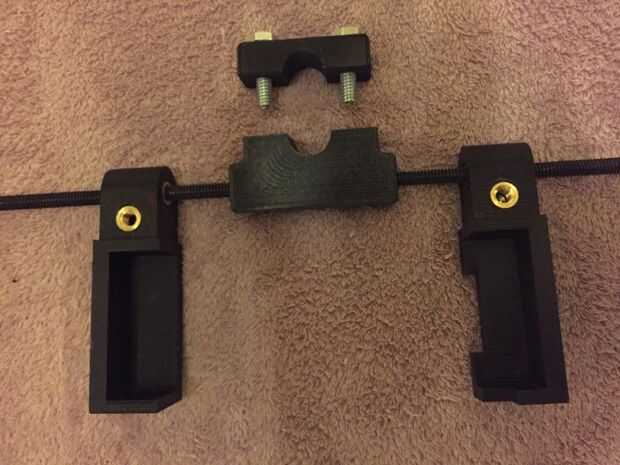 También, imprimir un soporte de dos piezas para la fijación a la cama (4 insertos por soporte). Pernos de 1/4-20 estándar para poner los dos juntos.