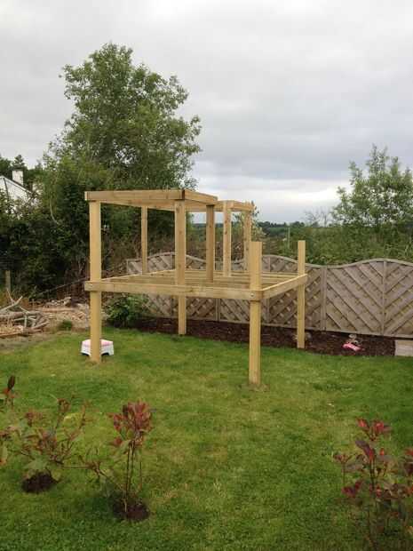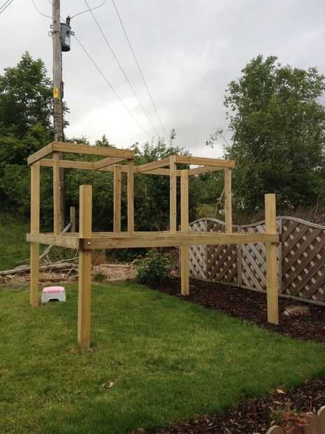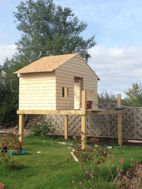Uso concreto para ropa de cama en los posts porque es pesado superior. Mi tamaño eventualmente era sólo traje 8 x 4 hojas para el techo también minimizan desperdicio. 8 x 2 hojas de aglomerado para el piso interior y tableros de la cubierta de afuera. Estos niños saben para poner a prueba la estabilidad de casitas para lo apropiado para un adulto en caso de que la esposa me echan construí. Techado sobre la capa con fieltro verde. Sellado de los agujeros de la influencia y las juntas con silicona de tiempo todos.