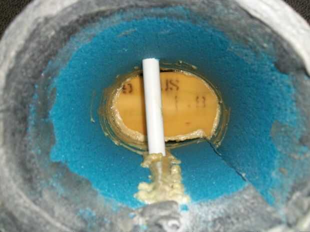 Para hacer la pinza de corte un viejo cojín de sofá en forma de garra. Fuertemente pegado dentro del camping cilindro de espuma y hacinados en la base de la uña. Este paneles secos cortado y aplicado a los bordes de la uña con pegamento caliente para darle un borde levantado.