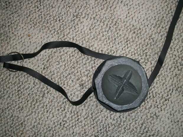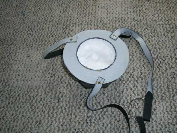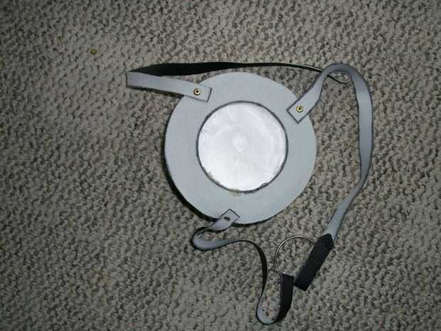 Corte un anillo de piel sintética y había clavado unas correas de cuero que. He probado en y había conectado las correas en la parte posterior por medio de un anillo de metal que pueden abrir y cerrar. Una vez que me di cuenta del tamaño correcto para las correas cosí bucles al final de ellos. Originalmente os adjunto el cuero a la espuma con pegamento caliente, pero fui a una fiesta donde las mujeres lo mantienen agarrando. Estaba a punto de salir al día siguiente asegura con pegamento del gorila y ha sido excelente desde.