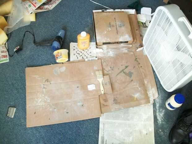 Aplicación: Aplicar látex a un apoyo, un pincel de espuma y poner un fino, incluso la capa en la superficie que desea al látex. Las superficies porosas pueden tomar muchas capas si desea que se conviertan en liso. Tuve que ir bastante fuerte en la primera capa o dos de la espuma del sofá porque es aspirado el látex como una esponja.