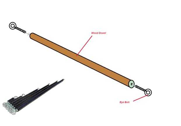 Las barras consisten en un poste con un perno de ojo en cada extremo. El diámetro del perno de ojo que selecciona y el diámetro de los postes efectuarán el siguiente paso de su proceso, y así que te aconsejo leer por delante así que usted comprenderá plenamente cómo se celebrará por el soporte de montaje. Los pernos de ojo pueden acoplarse en los extremos de una espiga grande si usted puede encontrar uno que sea de una longitud adecuada. El perno de ojo será garantizado por el uso de ganchos de mosquetón en el dosel y el soporte de montaje, y así el agujero del ojo del perno debe ser medida según el tamaño del clip de carbiner va a utilizar. Por desgracia, vienen en muchos diversos tamaños y estilos que no puedo recomendar un tipo o tamaño específico. Tenga cuidado en pre-taladrar el agujero en cada extremo de la espiga para atornillar en el circuito del ojo. Asegúrese de que asegurar el pasador y utilizar todas las precauciones de seguridad.
