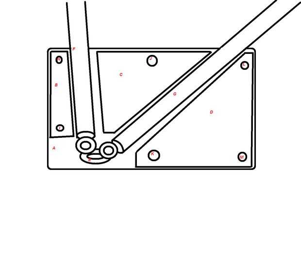 Nota: Tienes que redondear las esquinas de estos soportes. Se pegan algunos, y entonces no quiere riesgo lesiones si alguien topa en la esquina de uno de los soportes expuestos. En lugar de la armella se muestra como parte E, para mina taladré un agujero en la parte A para la inserción de una cerradura.