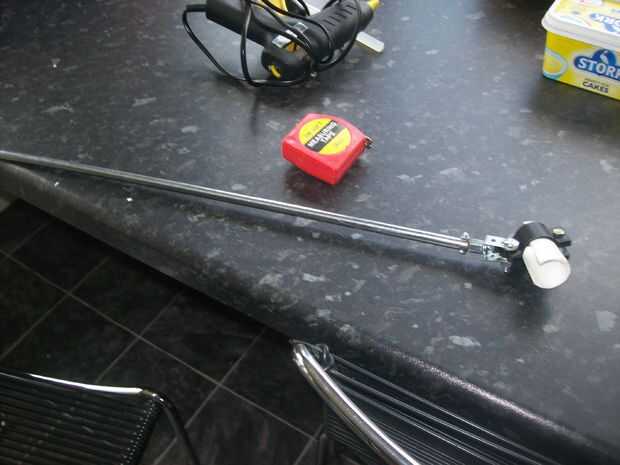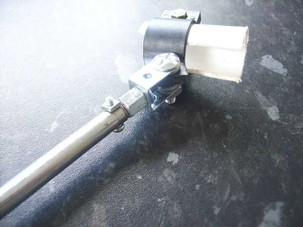 Para unirla al soporte del micrófono taladré un agujero de 4mm a través del tubo de aluminio y luego a través de la autopista m6 perno prutudes de la parte superior del soporte del micrófono y empernado junto con un mecano tornillo y tuerca como se muestra en la cuadro 1.