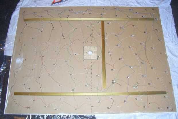 Los LEDs fueron cableados con el cable de longitudes de cable de red CAT5 que era simplemente alambre herida en las patas del LED y luego soldadas para una buena conexión. El agujero en el medio es para que la red de luz de sala cableado puede venir a través. Se asegura que el techo por un par de tornillos alrededor de la habitación origonal luz así que cuando no hay agujeros en el techo.