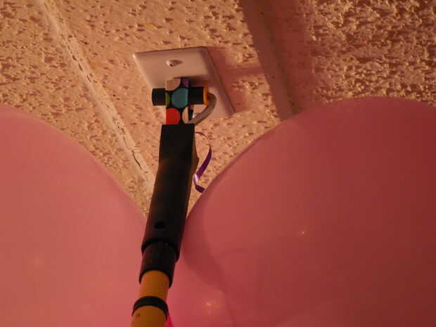 En el cuadro de introducción usted notará colgué una bola del espejo, un móvil de cuerda modificado fue utilizado y luego la bola enganchada a él y luego a la placa de diseño. La foto de arriba muestra la herramienta del aplicador en la acción y una imagen de elementos adicionales para ayudar a colgar varias cosas.