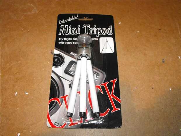 Usted puede encontrar estos trípodes mini por todo el lugar. Compro mina en una tienda local de dólar de $1 por pieza. Difundir las tres patas y buscar en el centro, habrá un tornillo de cabeza Phillips saque. Ahora usted tiene las piernas separadas. Tomar las piernas separadas y buscar en la parte superior. sacar los tornillos que sujetan dos de las patas, necesitaremos en el siguiente paso.