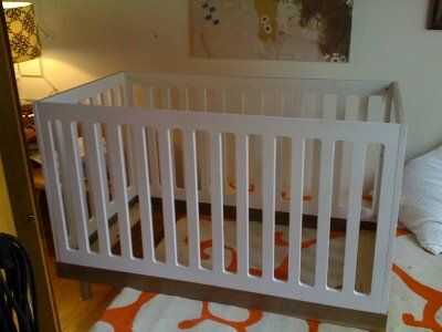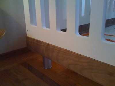 También puede ver las piernas de aluminio simple utilizadas para apoyar la cuna. Encontrado en línea por cerca de 6 dólares. Corren a través de un tablero de madera maciza que se ajuste y pegado en una ranura en el interior de la nuez.