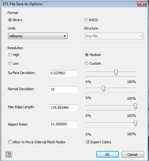 después de guardar el archivo se puede exportar como un. STL y encuentro que es mejor establecer la opción para las unidades en milímetros