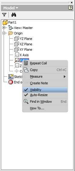 Ya que utilicé el origen como el centro de mi equipo desea utilizar como eje para mi equipo. Si tu equipo fue dibujado del centro de origen puede dibujar una línea del eje en un plano perpendicular. Simplemente hice mi eje visible.