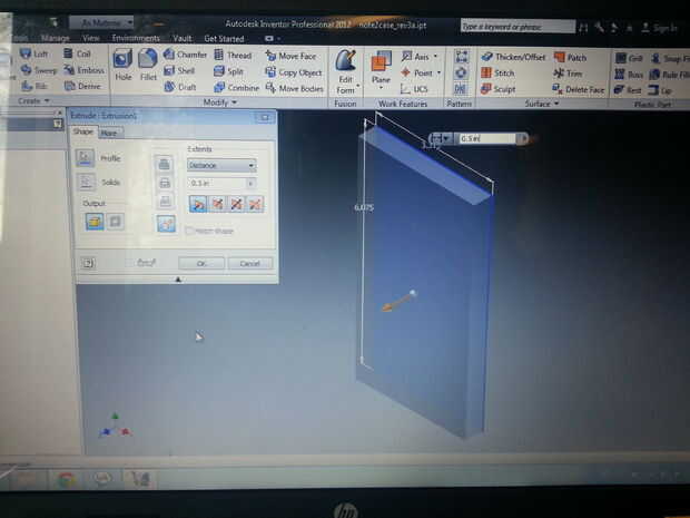Esta es la parte más importante. Para comenzar con probablemente necesitará un conjunto de pinzas así que usted puede medir su teléfono. Entre el largo y ancho de su teléfono en Autodesk Inventor a continuación sacar el grosor para obtener un bloque de aproximadamente el mismo tamaño como su teléfono. Puesto que vamos a hacer un caso queremos nuestro bloque al ser más grande que nuestro teléfono por sobre el espesor de la caja. Así que si estamos haciendo un caso que es de 0,100 pulgadas gruesas entonces necesitamos agregar 0,200 pulgadas a la longitud y anchura y 0.100 al grueso.