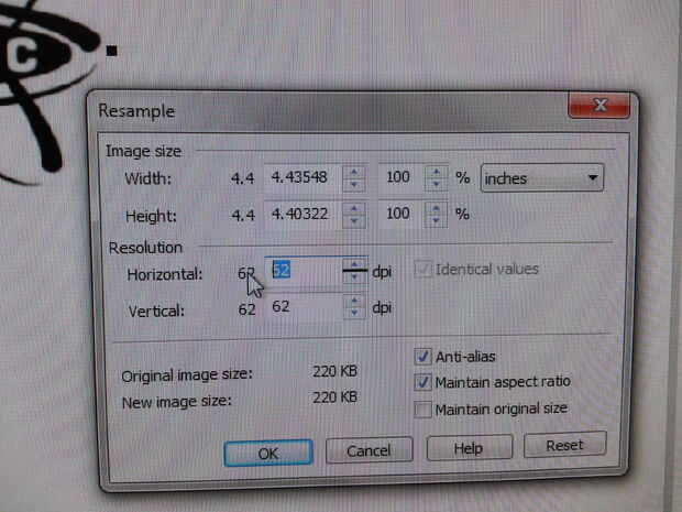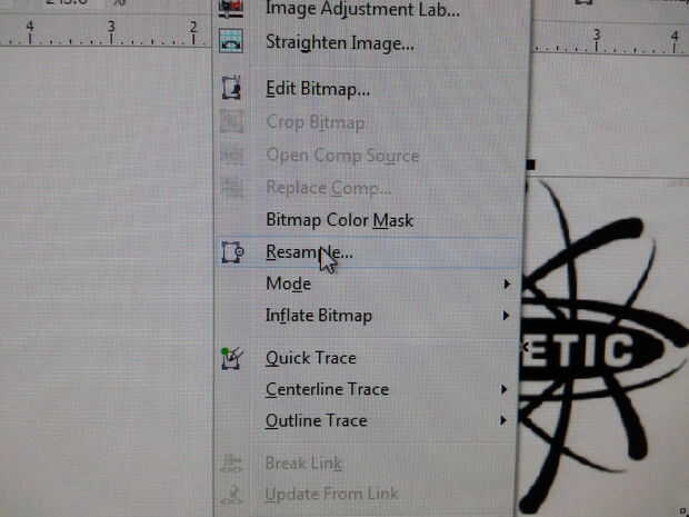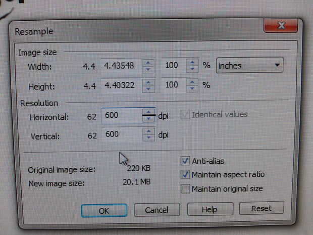 Elija el menú mapas de bits Remuestrear la imagen y los píxeles de la bomba. Lo cambié a 600 para conseguir mayor precisión de mi imagen después de que transformar
