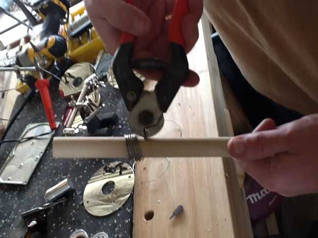 Utilicé una varilla de pasador para envolver el cable alrededor. Primero perforé un agujero en el extremo lo suficientemente grande para Deslice el cable y comenzar a envolver...