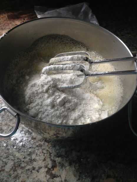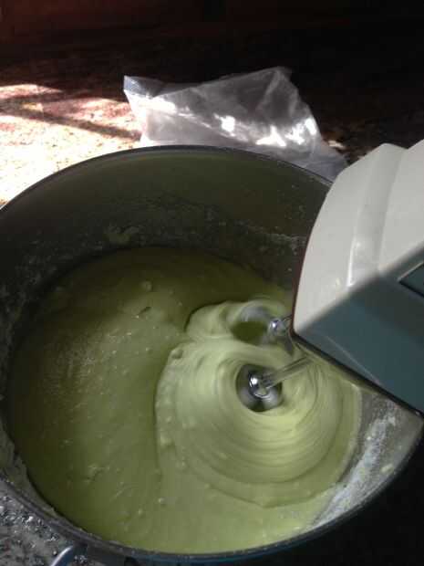 Mezclar agua, aceite, mezcla de torta y huevos durante 2 minutos con la batidora.