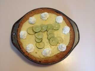 Esta es una tarta deliciosa y picante que me gustó mucho hacer! Puede utilizar 4-5 limones regulares pero usaba limes claves (punto 22). En primer lugar, hacer una costra de galleta, luego el limón relleno y finalmente, rematar con alguna crema batida azucarada y el símbolo pi hecho con pequeñas rodajas de limón. Vamos a empezar!