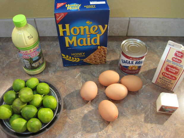 Esta es una tarta deliciosa y picante que me gustó mucho hacer! Puede utilizar 4-5 limones regulares pero usaba limes claves (punto 22). En primer lugar, hacer una costra de galleta, luego el limón relleno y finalmente, rematar con alguna crema batid