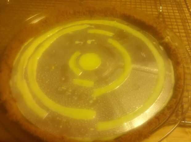 Introduzca suavemente la plantilla en el pie. No presione en exceso, pero desea mantener la plantilla de doblado para arriba en vez de sentarse sobre el pie. Hornear la tarta a 325° F durante 15 minutos; debe ser completamente fijó, pero todavía un poco zangolotean en el centro.